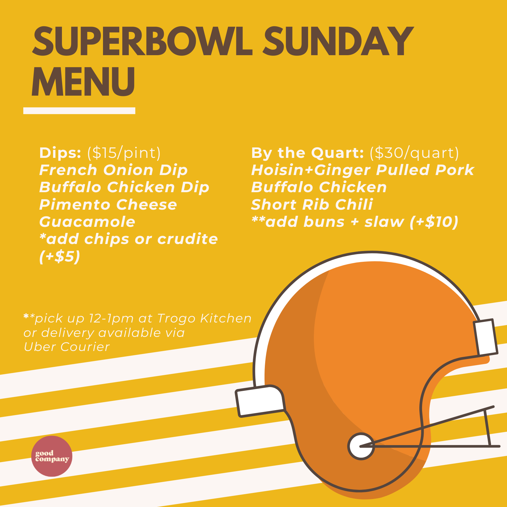 Want to place an order? Email us at stephanie@goodcompanychicago.com by Sunday at 10pm CT.